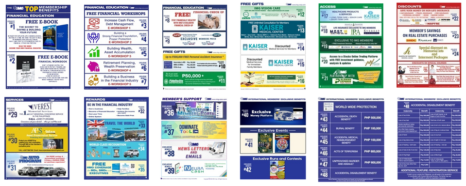 Furthermore, IMG is a one-stop-shop financial distribution company not a networking company. We are partnered with the most reputable companies in the financial industry of the Philippines. Availing your one-time lifetime IMG membership, you can enjoy forever all the perks and benefits what IMG offers.