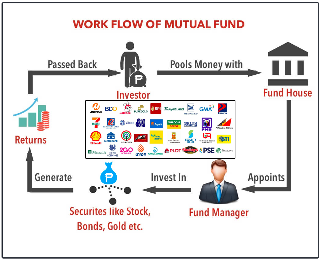 Ang Mutual Funds ay pinagsama-samang pera ng mga investors, kunwari yung P100,000 ko, P5,000 mo at P10,000 ng kaibigan mo pagsasamahin ng Fund Manager yan at dahil malaki ang budget, ibibili yan ng mga “Blue Chips” Companies like Jollibee, SM, Ayala, Globe, etc. Now, kapag kumita na ibabalik ito sa mga investors.