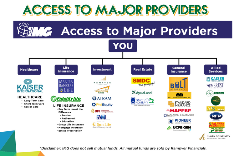 IMG is a one-stop-shop financial distribution company not a networking company. We are partnered with the most reputable companies in the financial industry of the Philippines. Availing your one-time lifetime IMG membership, you can enjoy forever all the perks and benefits what IMG offers.